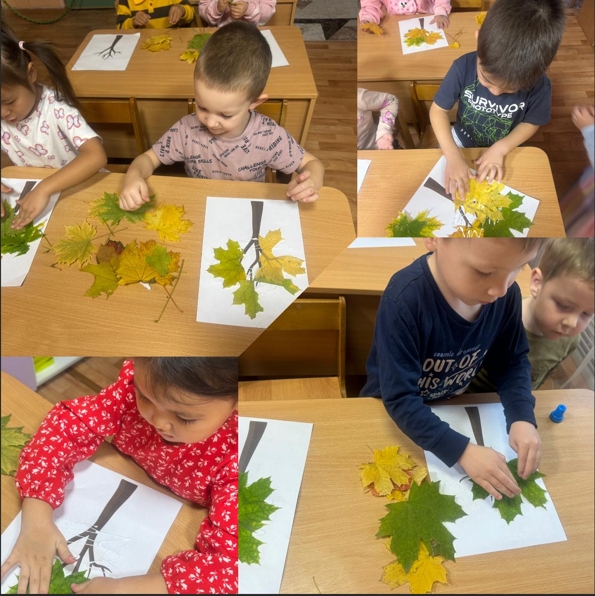 - Развивать у детей внимание к деталям, учить их подбирать листья и аккуратно приклеивать их на рисунок.